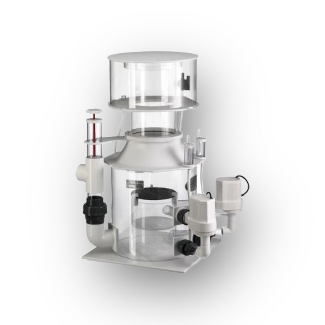 The new bubble plate design allows the height of the protein skimmers to be reduced compared with the current range to allow them to fit in a greater number of installations and cabinets. The primary use of the bubble chamber is to prevent turbulence from the skimmer body and neck as turbulence can pull waste-loaded bubbles back into the water column causing a reduction in efficiency. The air-to-water ratio is so high that there is an almost immediate reaction with the waste therefore there is no requirement for the tall reaction chambers found on some low air protein skimmers thus keeping the units compact.