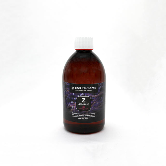 Z-NitroPlus is a natural source of NO3 that can be dosed to the aquarium in a controlled manner in order to achieve ideal NO3 levels. We recommend to use Z-NitroPlus if your levels of Nitrate are below 5ppm.